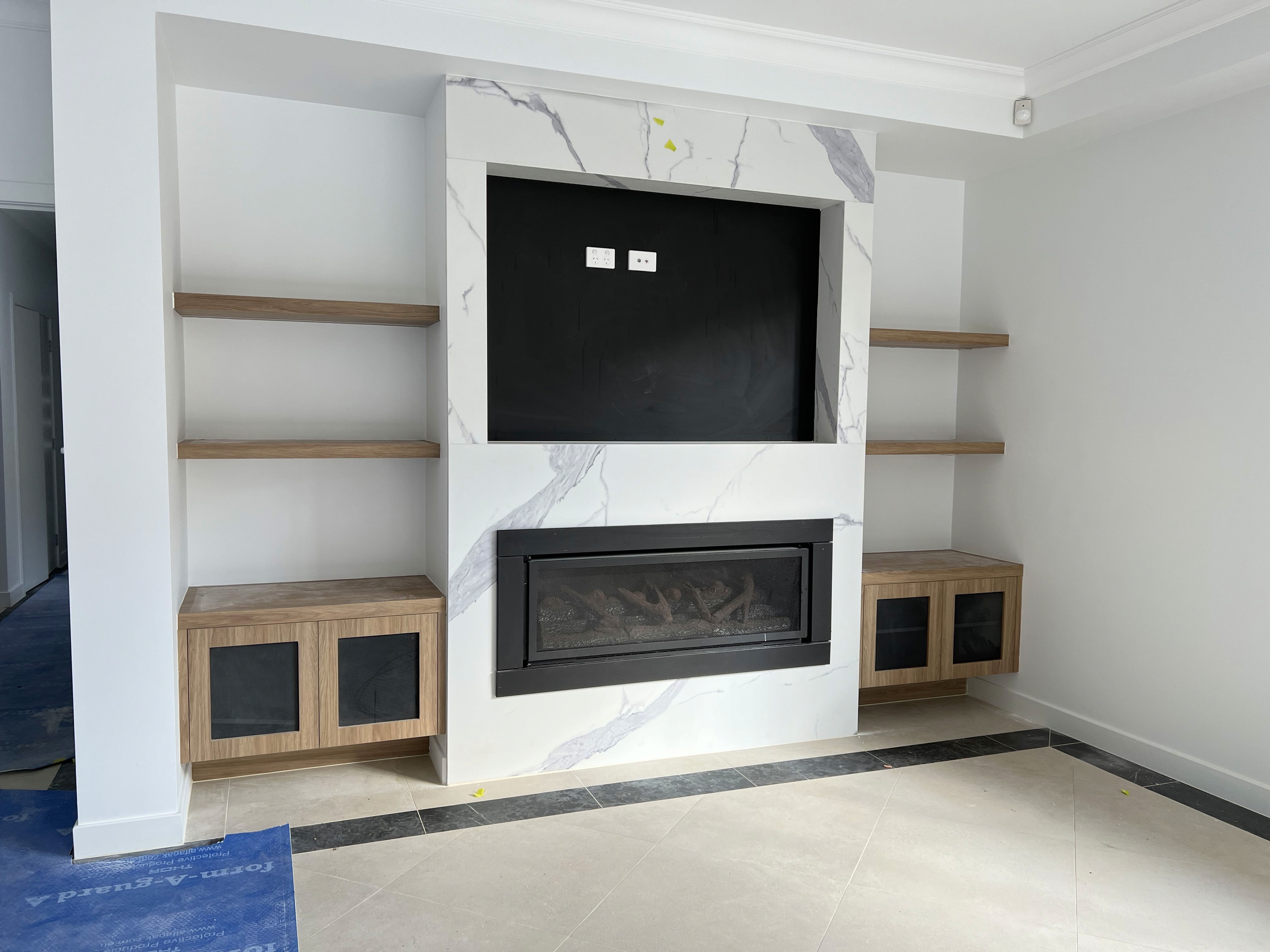 Create a dramatic focal point with a stone feature wall. Our expertise in cladding utilizes marble and porcelain to add texture, depth, and architectural impact to foyers, fireplaces, and exterior facades.